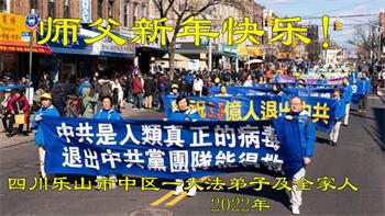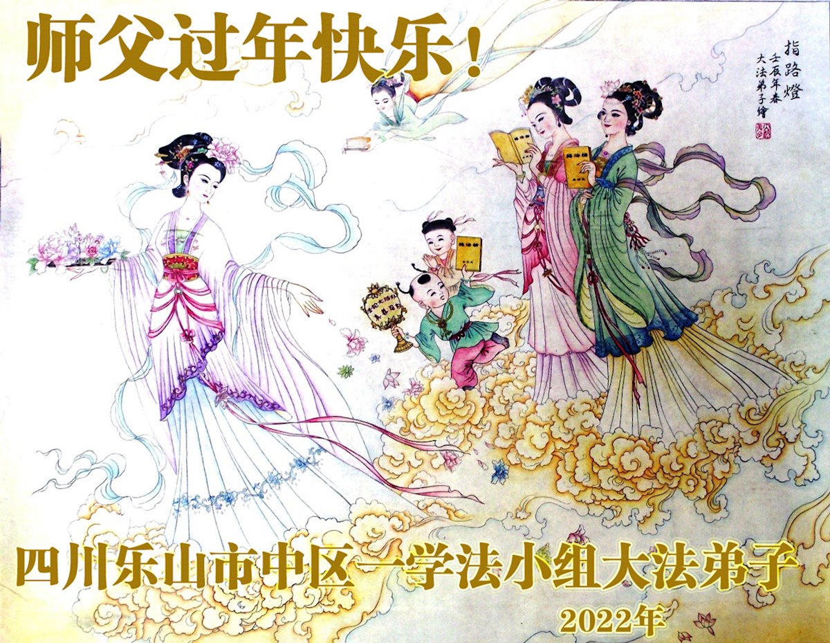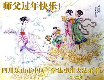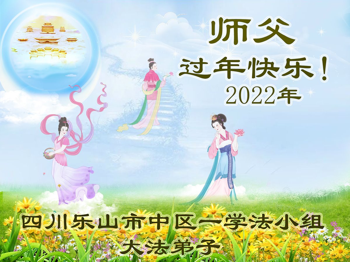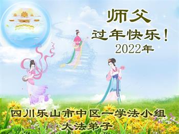 四川省乐山市中区一学法小组大法弟子恭祝伟大慈悲师父过年快乐!