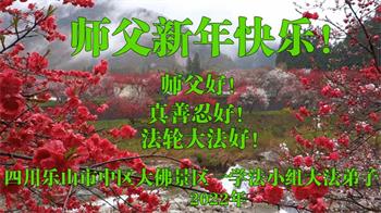 在新的一年里,弟子要精進再精進,跟上正法進程,做好三件事,多救人,跟恩师回家。 四川遂宁市蓬溪县大法弟子跪拜 二零二二年新年 四川遂宁市一学法小组大法弟子恭祝师父新年快乐!