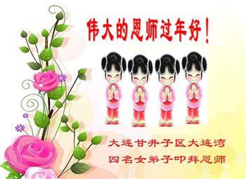 辽宁省大连市甘井子区大连湾地区四名老年女大法弟子恭祝师尊过年好!