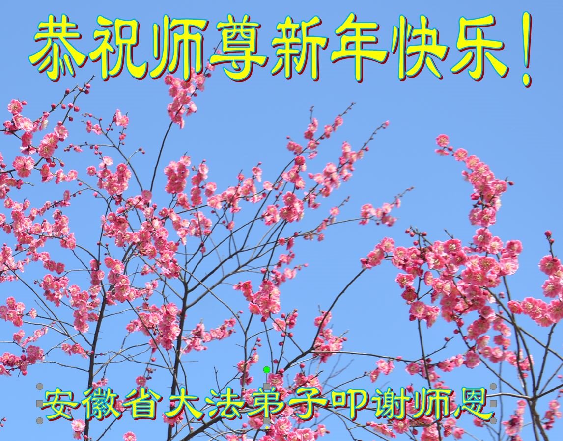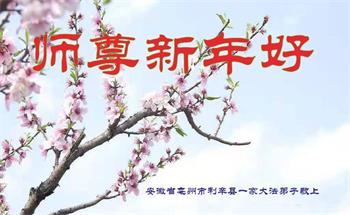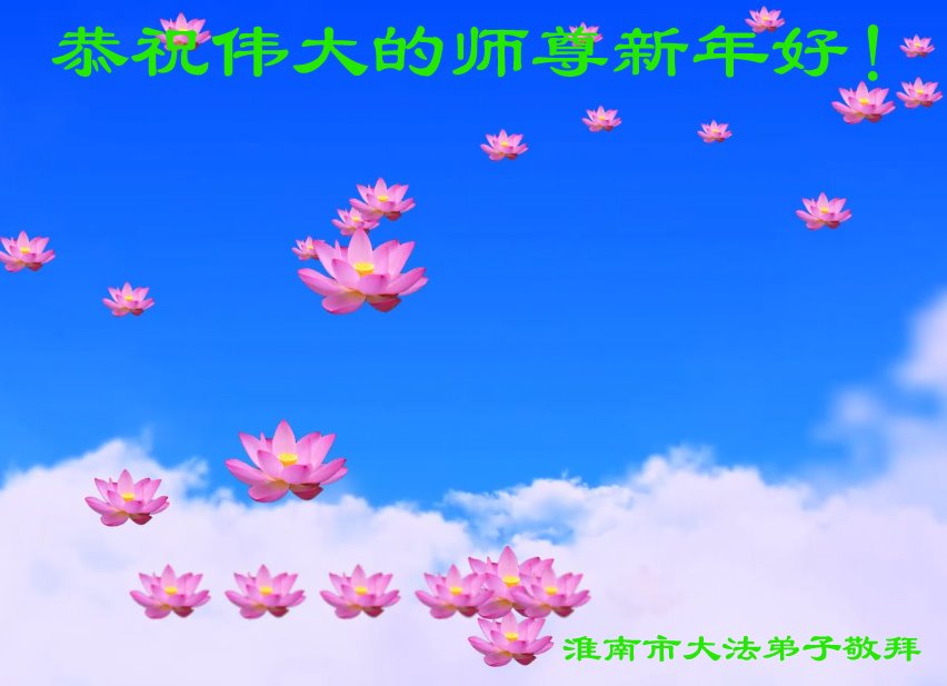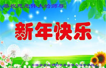 慈悲伟大的师尊您好!祝师尊新年快乐!祝师尊新年宽心放心!祝师尊早日与弟子团圆! 安徽省六安市全体大法弟子跪呈!双手合十敬上 安徽省淮北市全体大法弟子恭祝师尊新年快乐!