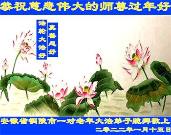 【明慧网二零二二年一月三十日】 安徽省铜陵市一对老年大法弟子恭祝慈悲伟大的师尊过年好!