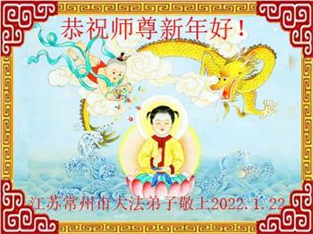 修炼法轮大法已经二十三个年头了。一路走来,真是坎坎坷坷,有闯不过难关时的痛苦和困惑,也有放下执着时的释然和喜悦。每当想起这些,心中充满了对师尊无比的感恩与敬意。弟子无以为报,唯有精進实修,救人不怠,做一个正法时期合格的大法弟子,以回报师父苦心救度之洪恩。 南通市崇川区大法弟子叩谢师父! 二零二二年一月二十二日 江苏常州一大法弟子恭祝师尊新年快乐!