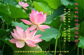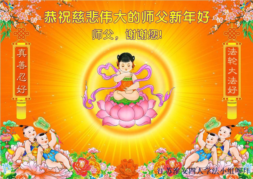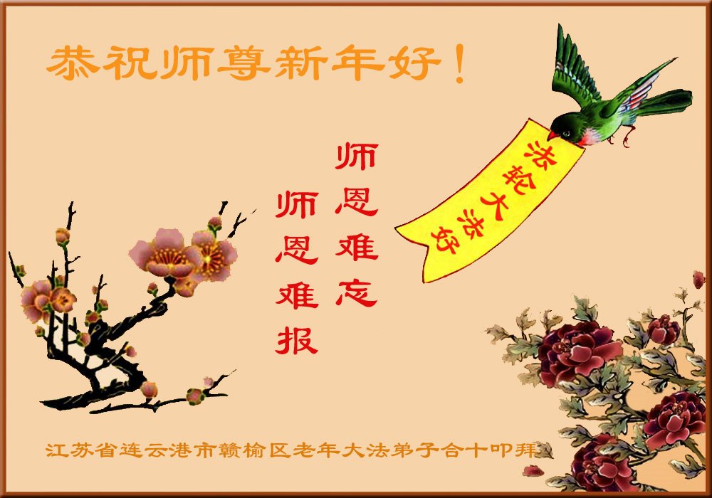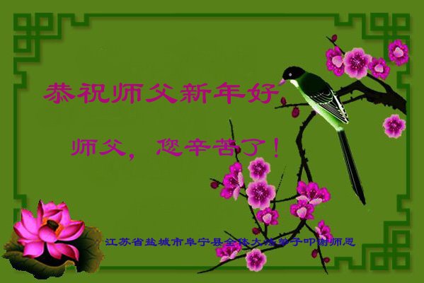 恭祝师尊新年好!师恩难忘,师恩难报。 江苏省连云港市赣榆区老年大法弟子合十叩拜 江苏省盐城市阜宁县全体大法弟子恭祝师尊新年好!