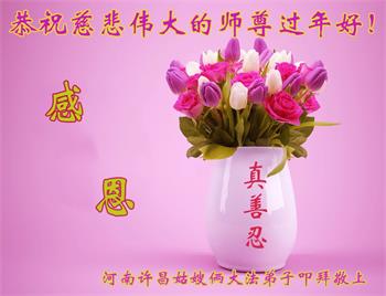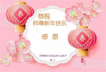 中国新年即将来临,鹿邑大法弟子倍加想念师父!师父无量慈悲,为救度我们返回天国世界,历尽千辛万苦。师恩浩荡,弟子对师父的感恩,无任何语言可以表述。在新的一年里,唯有扎扎实实修炼自己,做好三件事,兑现史前誓约,来报答恩师,盼师父多一份欣慰,少操一些心。 河南周口市太康县大法弟子恭祝师尊新年快乐!