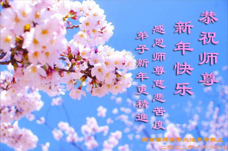 修炼大法福寿延,争分夺秒真相传。 不恋人间名情利,兑现誓约回家园。 河南省三门峡大法弟子给师父拜年!恭祝师父新年快乐!