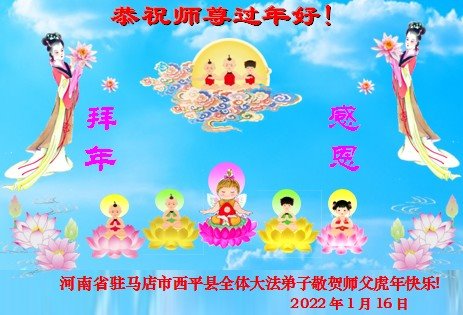 【明慧网二零二二年一月三十日】 河南省驻马店市西平县某乡全体大法弟子恭祝师父过年好!
