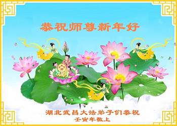 湖北省武汉两大法弟子敬祝慈悲伟大的师父过年好!