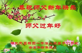 我们学法小组大法弟子在师父的慈悲保护下,一直平稳的走到今天。弟子们都在努力做好三件事,谢谢师父! 湖北武汉江岸区大法弟子们恭祝师父新年快乐!师父过年好!