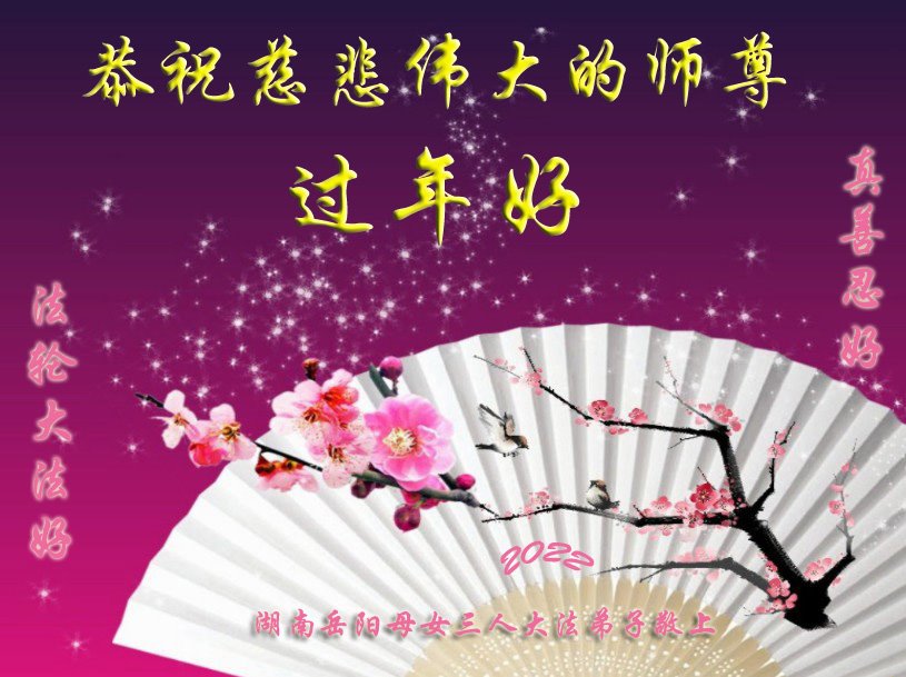 湖南岳阳母女三人大法弟子恭祝慈悲伟大的师尊过年好!弟子们感恩师尊慈悲救度! 湖南岳阳一大法弟子携全家人恭祝慈悲伟大的师尊新年快乐!