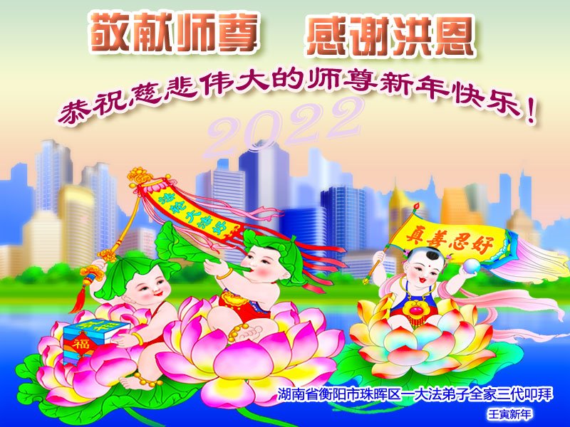 在师父的慈悲保护下,弟子身心健康,全家幸福安康。弟子无法用语言来表达对师父的感恩,唯有多学法、多修心、多救人,做好三件事,跟随师父走到底!愿师父多一份欣慰,少一份操劳,唯愿师父笑! 二零二二年元月十四日 湖南省衡阳市珠晖区一大法弟子全家三代恭祝师尊新年快乐!