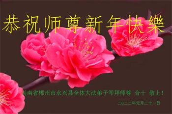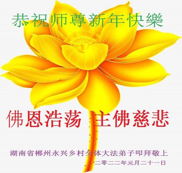 【明慧网二零二二年一月三十日】 湖南省郴州市永兴县全体大法弟子恭祝师尊新年快乐!