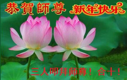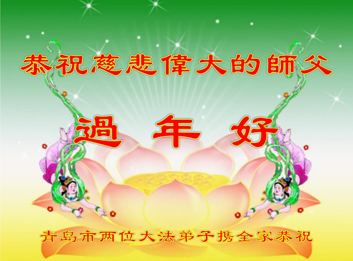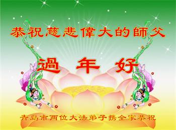 山东省青岛开发区夫妻大法弟子恭祝慈悲伟大的师尊过年好!