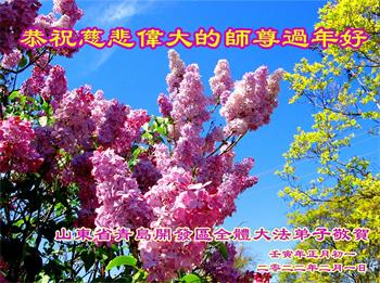 山东省青岛大法弟子恭祝慈悲伟大师尊新年快乐!