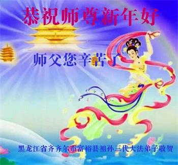 黑龙江省齐齐哈尔一大法弟子代表全家恭祝师尊过年好!