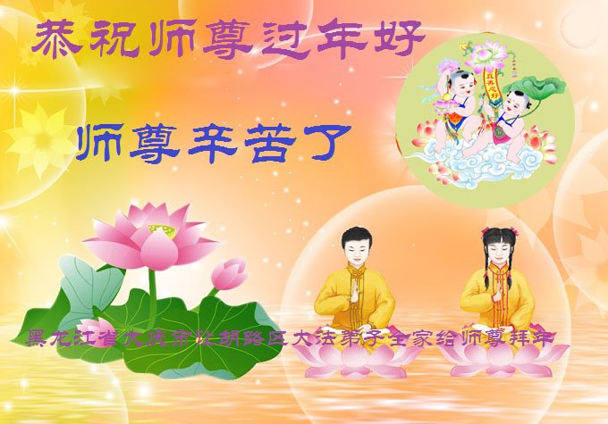 黑龙江大庆市让胡路区大法弟子全家给慈悲伟大的师尊拜年!感恩师尊慈悲救度!