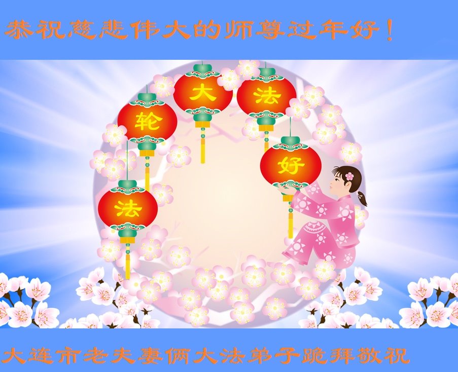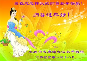 大连夫妻同修恭祝师尊过年好! 辽宁省大连市一大法弟子携家人恭祝师尊过年好!