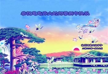 恭祝慈悲伟大的师尊新年快乐! 弟子谢师恩! 新年将至 弟子遥拜 恭祝师尊 新年愉快 感恩师尊 赐予大法 真善忍好 铭刻心里 回顾以往 弟子惭愧 人心太重 摔了跟头 师尊慈悲 不记子过 唤醒弟子 跌倒爬起 大法神威 熔炼弟子 金刚百炼 真我显现 大法真相 传遍全球 迷中世人 快快觉醒 红魔害人 大法救人 抹去兽记 选择光明 江苏省连云港市一大法弟子恭祝慈悲伟大的师尊过年快乐!