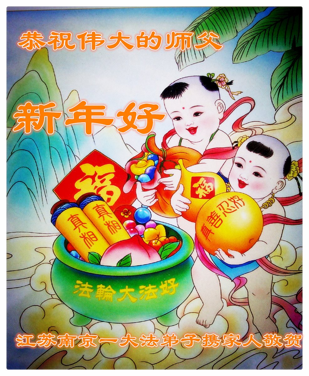 恭祝慈悲伟大的师尊新年快乐! 唤有缘 创世主神 莅临人间 洪传大法 法力无边 真善忍好 铭记心间 同化圆满 脱俗超凡 人丑蛤蟆 妒嫉心眼 仇视佛法 害人不浅 操纵邪恶 毒害众生 谎言流毒 祸害甚远 牢狱酷刑 迫害牵连 腥风血雨 惨绝人寰 亿万法徒 烈火锤炼 修炼志坚 天地可见 大法福音 全球传遍 救度众生 洪恩无限 呼唤有缘 快找真相 生命得救 来世夙愿 江苏省常州市一学法小组大法弟子恭祝师父过年好!