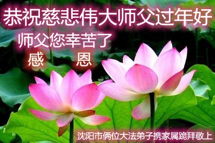 辽宁省沈阳两名大法弟子携家属恭祝师父过年好!