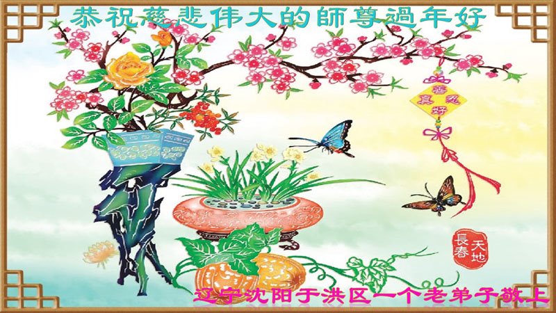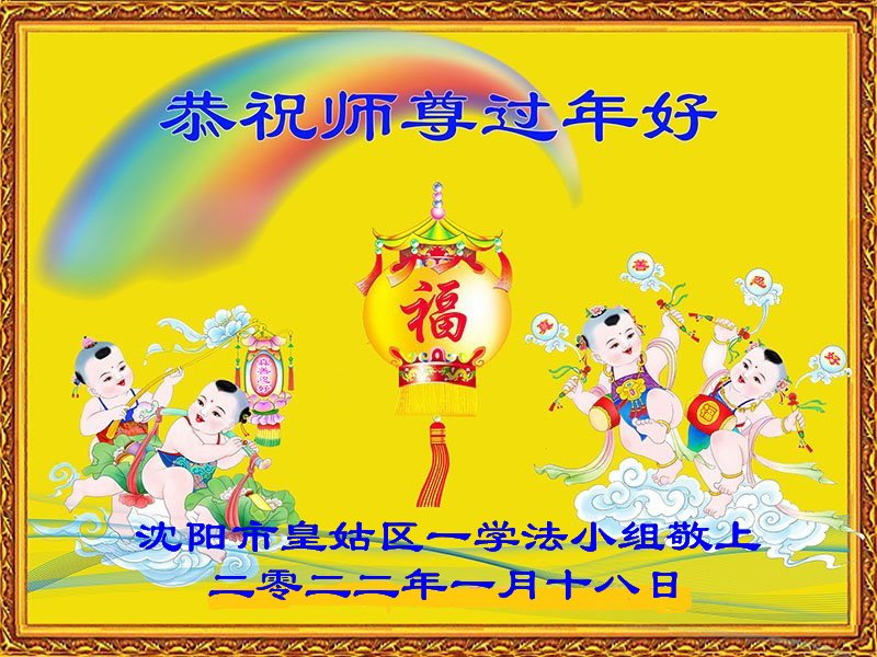 恭祝师尊过年好! 沈阳市皇姑区一学法小组大法弟子敬上 二零二二年一月十八日 辽宁省沈阳市于洪区一大法弟子恭祝师父过年好!