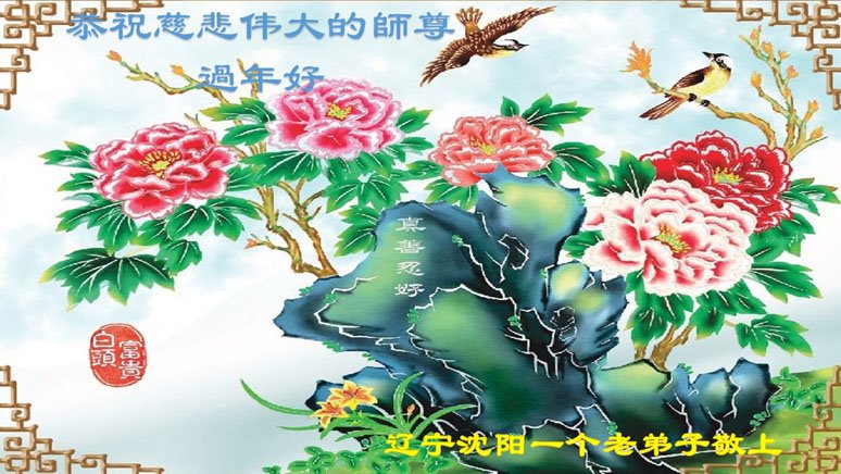 弟子感恩师尊的慈悲救度!我们会学好法,认真做好三件事,多救人,精進实修,跟师尊回家。 辽宁沈阳于洪区一老大法弟子敬祝慈悲伟大的师尊过年好!