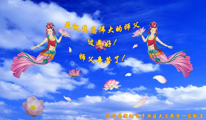 感恩师尊 时间如水流 新的一年又来临 遥望大洋彼岸 泪眼望穿 给伟大的师尊叩首 给师尊拜年 恭祝师尊新年好! 往事如烟 二十多年的修炼路上个 岁岁月月 师尊为弟子付出太多太多 忆往昔 数十个生死关头 都是师尊慈悲加持保护才闯过来 师恩浩荡弟子无以报答 只有遵照师尊教诲 好好学法、修好自己、救度世人 圆满随师父回家 辽宁省沈阳市铁西区一大法弟子恭祝师尊新年快乐!
