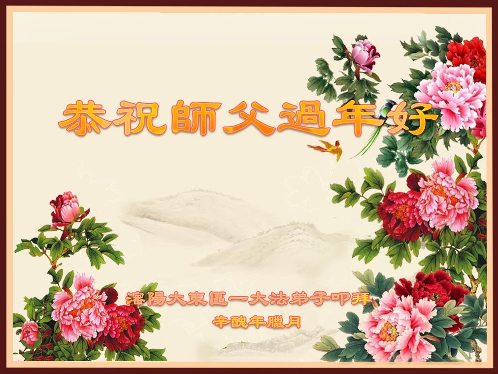 每逢佳节倍思亲,新年到来之际,大法弟子非常想念您,远隔千山万水,弟子恭祝师尊新年快乐!弟子知道,弟子们与您团聚的时间不远了。弟子一定抓紧稍纵即逝的宝贵时间,做好大法弟子该做的事,修好自己,多救世人,惟愿师尊笑。 辽宁省沈阳市铁西区一大法弟子给师父拜年!祝师父过年好!