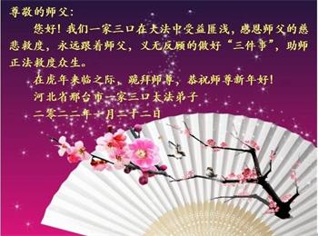 河北省邢台市一家三口大法弟子恭祝师父新年好!