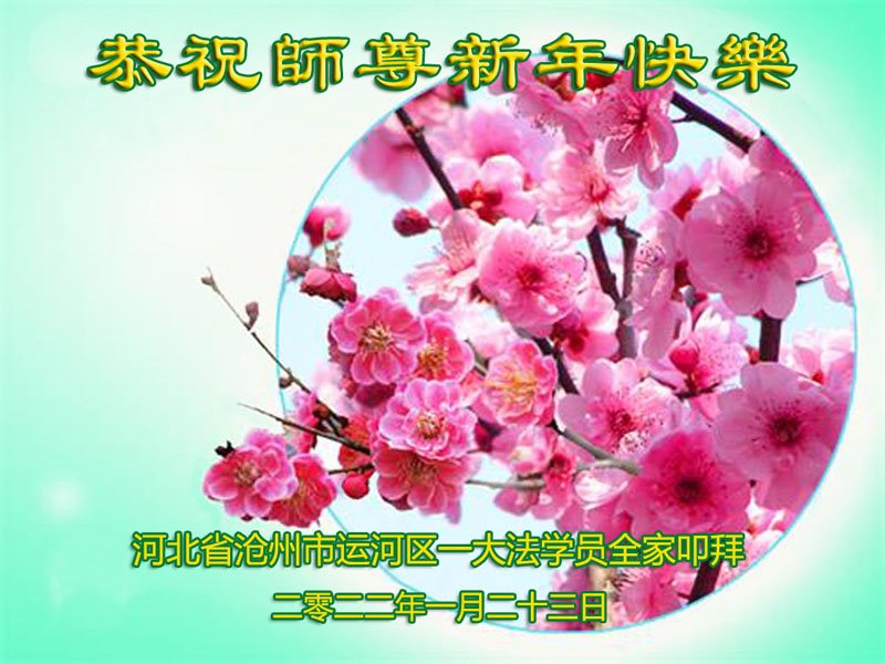 河北省沧州市运河区一大法弟子全家恭祝师尊新年快乐!