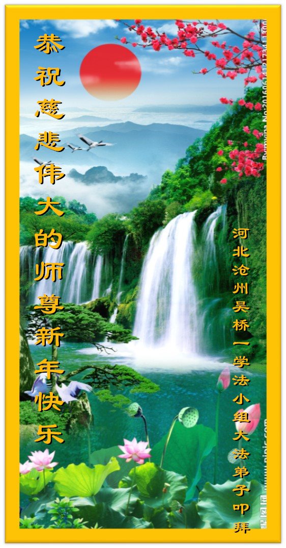 河北沧州吴桥一学法小组大法弟子恭祝慈悲伟大的师尊新年快乐!叩拜师尊!