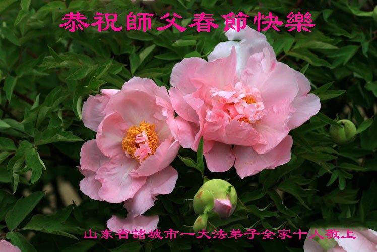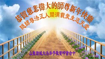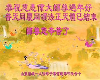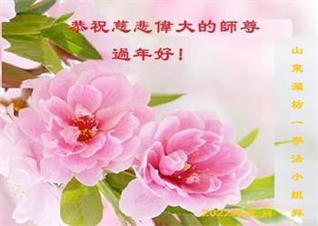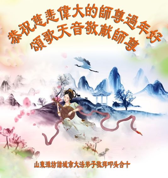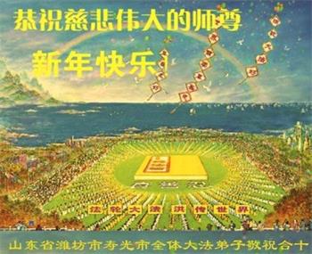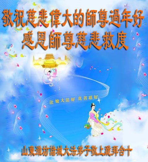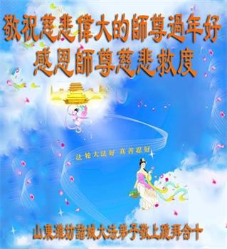 恭祝慈悲伟大的师尊过年快乐! 山东省寿光市台头镇全家大法弟子合十敬祝 山东潍坊一学法小组大法弟子恭祝慈悲伟大的师尊过年好!