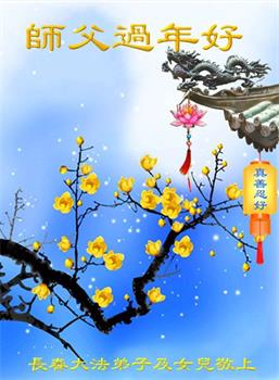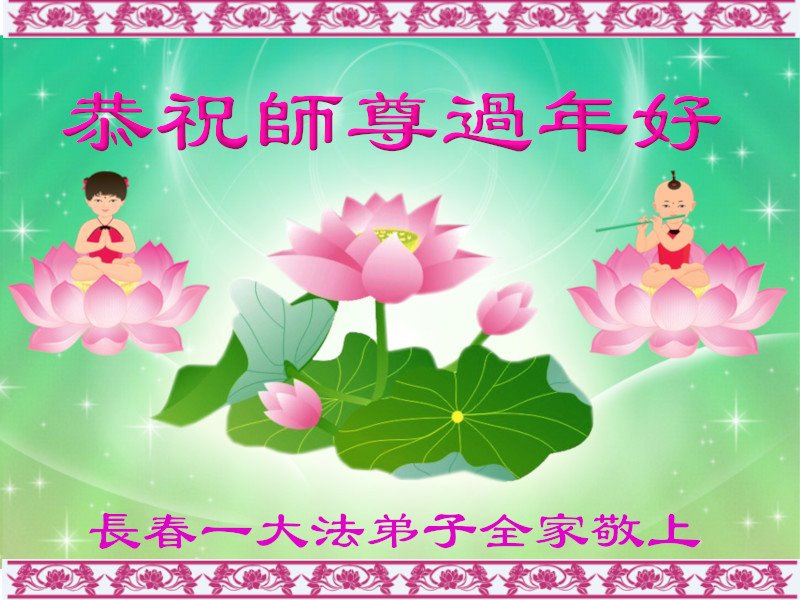 我是一名家乡的老弟子,我们全家每一个人都受到师尊的保护,在此我代表我们全家祖孙三代叩拜师尊,谢谢师父,您辛苦了。家乡的弟子想您。 吉林省长春市一大法弟子恭祝师尊过年好!