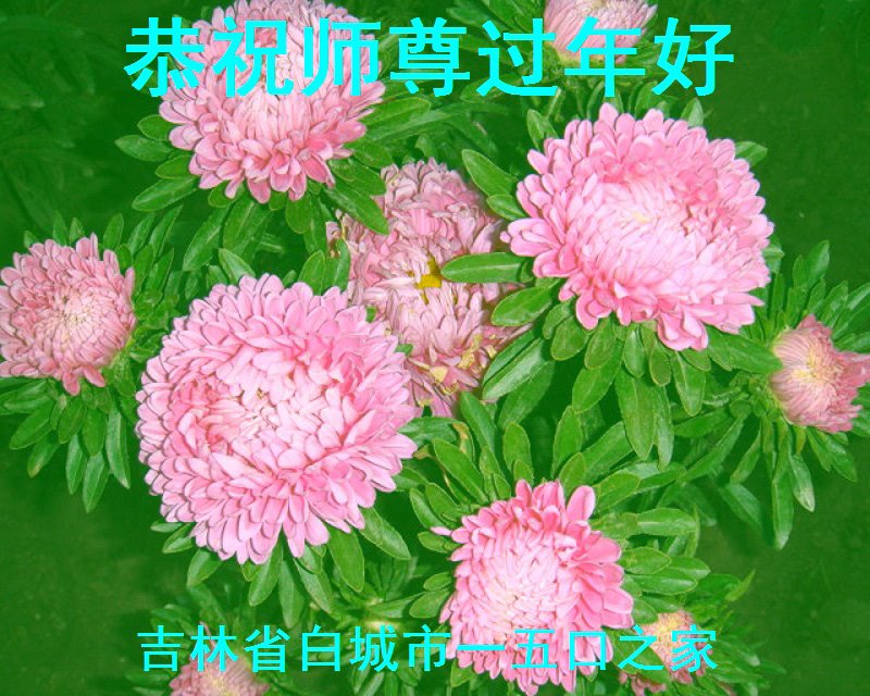 恭祝师尊新年快乐!师尊您辛苦了!弟子感谢师尊的多年苦度! 值此过年之际,弟子衷心感谢师尊!致以最诚挚的敬意。今后一定做好三件事, 报答师尊的救度之恩!谢谢师尊! 吉林省白城市一大法弟子恭祝师尊过年快乐!