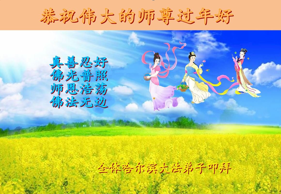 恭祝师父过年好 师父您辛苦了 弟子们想念您 谢师恩慈悲救度 谢师尊加持弟子 保护弟子 鼓励弟子 做好三件事 全体哈尔滨大法弟子叩拜!谢师恩! 黑龙江省哈尔滨父女俩大法弟子给师尊拜年!师尊过年好!感谢师尊的慈悲救度!