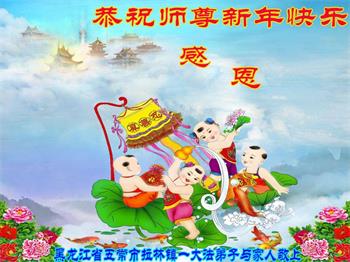 黑龙江省哈尔滨市高楞地区一名大法弟子携家人给师父拜年!师父过年好!