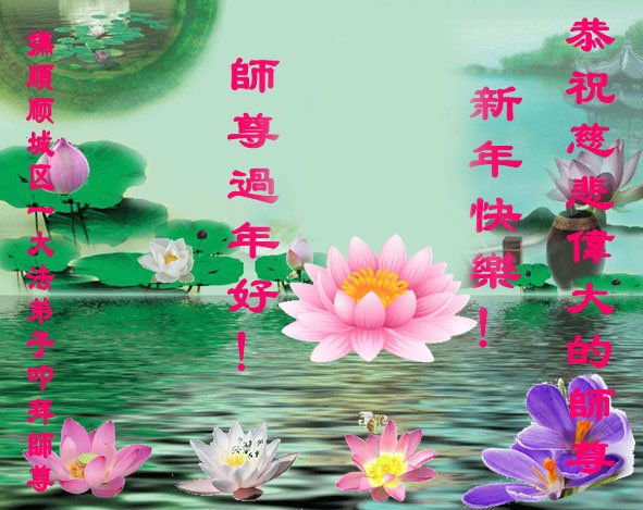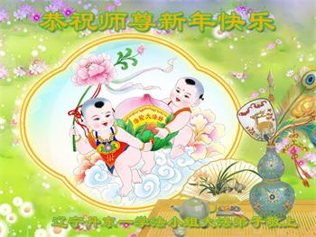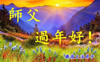 师父您好!恭祝慈悲伟大的师父过年好!祝您新春愉快!学法小组五人敬上! 辽宁省铁岭大法弟子夫妻祝师尊新年快乐!
