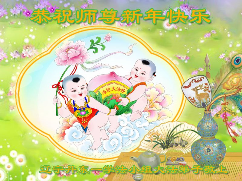 辽宁丹东一学法小组大法弟子恭祝师尊新年快乐!