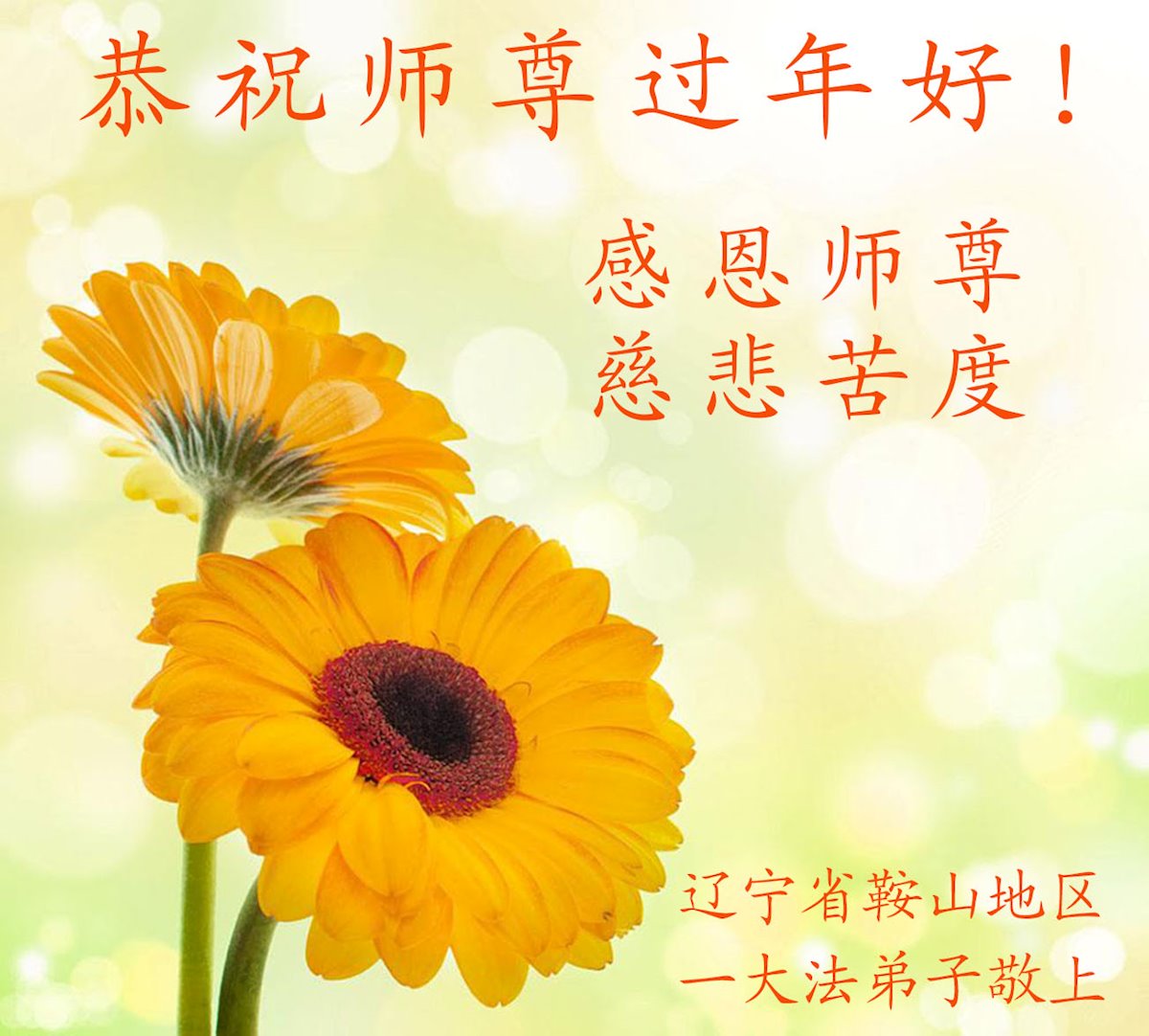 【明慧网二零二二年一月三十日】 辽宁省鞍山地区一大法弟子恭祝师尊过年好!