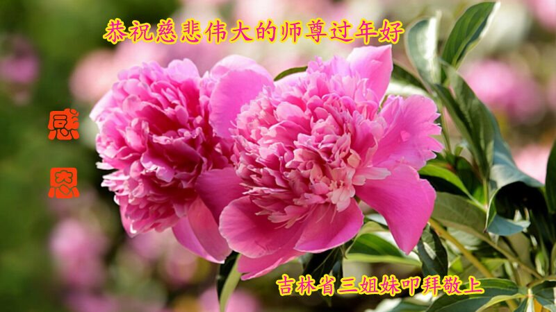 恭祝慈悲伟大的师尊新年快乐!弟子叩拜师尊,感恩师尊慈悲保护! 吉林省三姐妹恭祝师尊新年好!