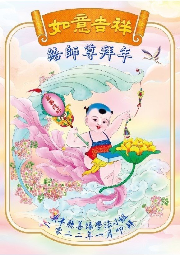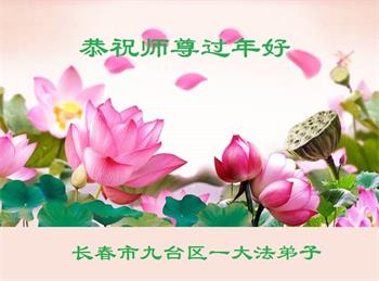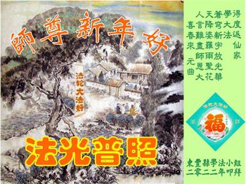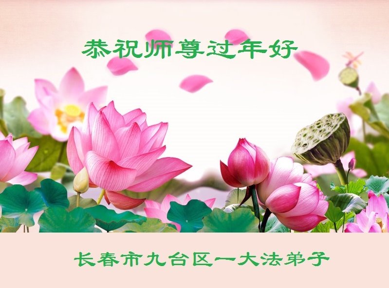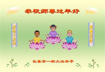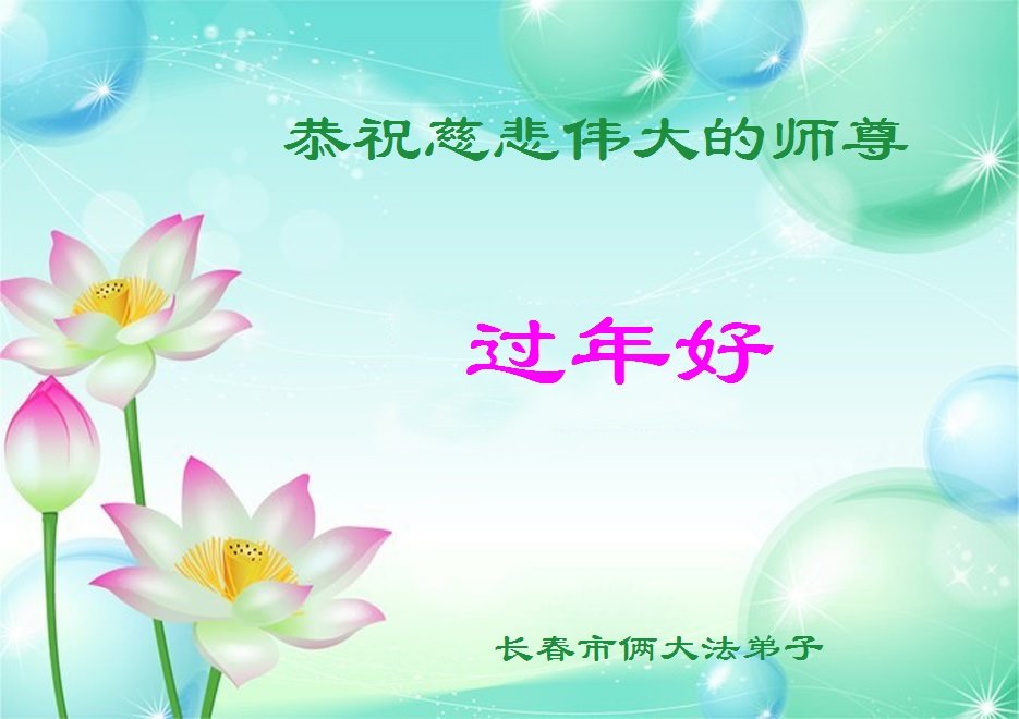 师尊新年好!法光普照! 喜春来 元曲 得法 人言难尽师恩大 天降婆罗雨圣花 苍穹新宇放光华 学大法 得度返仙家 吉林省辽源市东丰县学法小组弟子叩拜! 吉林省长春市两位大法弟子恭祝慈悲伟大的师尊过年好!