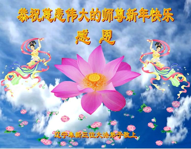 恭祝慈悲伟大的师尊新年快乐! 感恩师尊的慈悲苦度! 弟子跪拜师尊 辽宁省阜新市三位大法弟子敬上 辽宁省营口市中部两位大法弟子恭祝师尊过年好!