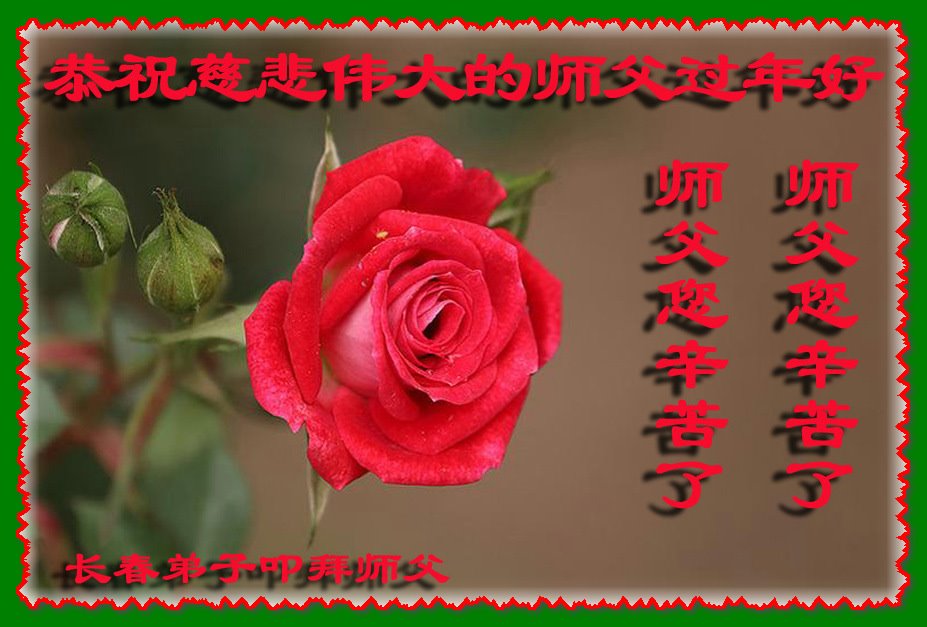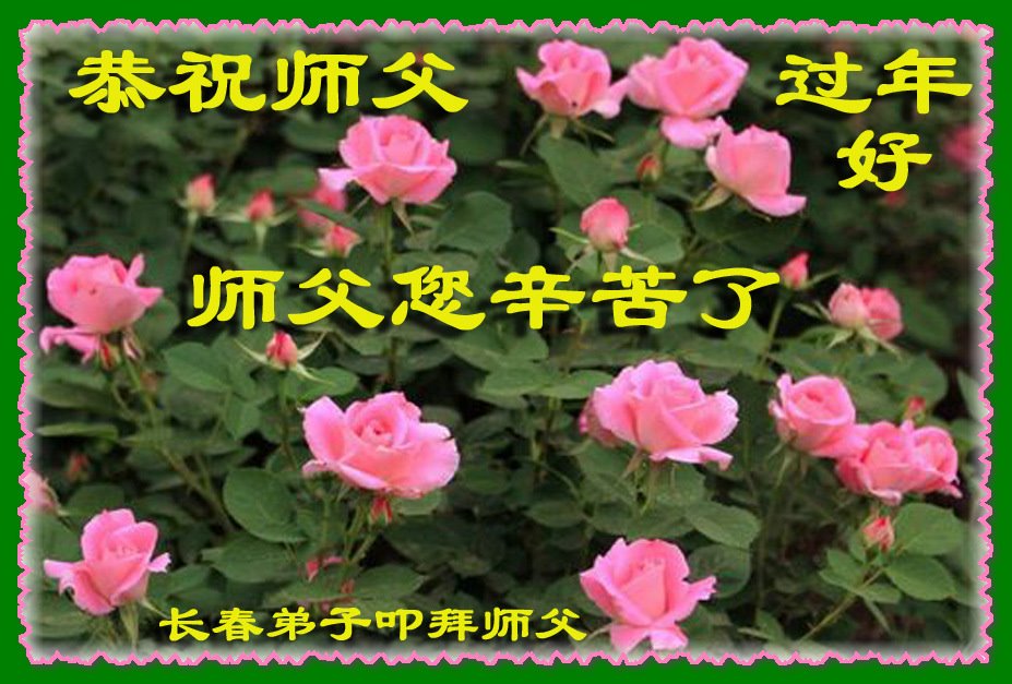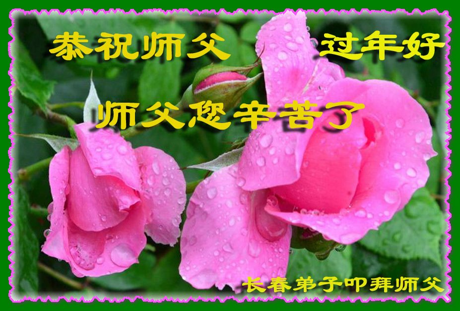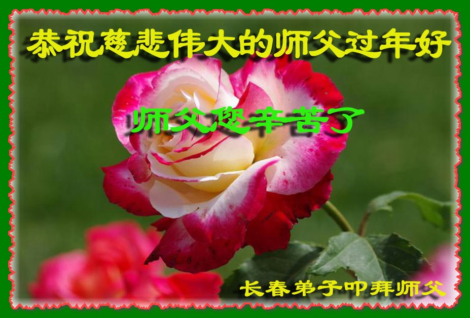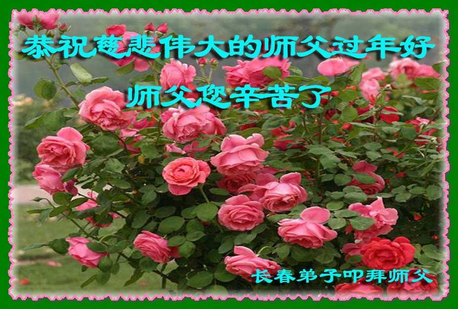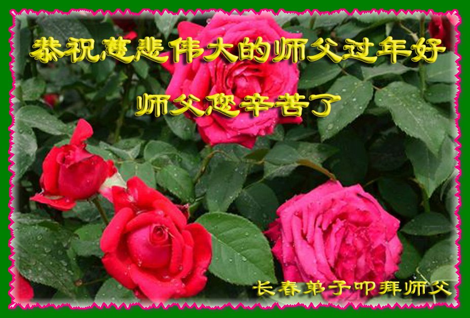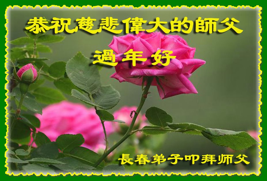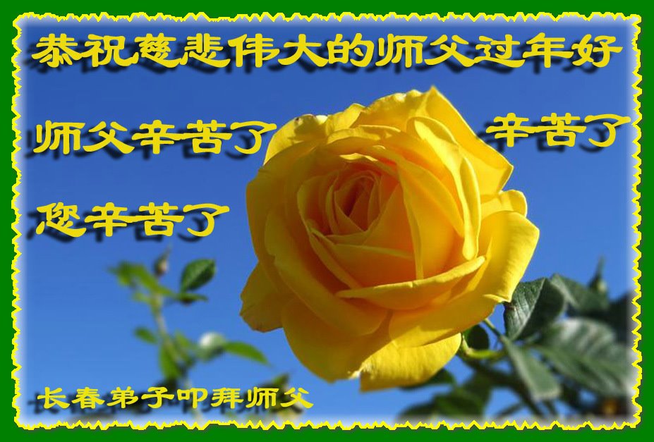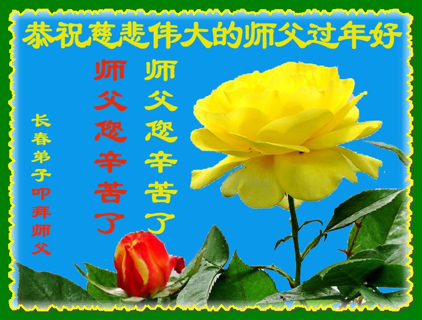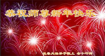 在这辞旧迎新的新年来临时,恭祝慈悲伟大的师尊过年好!新年快乐! 大陆大法弟子想念师尊,愿师尊早日和大陆大法弟子团聚。感谢师尊传大法三十载,真善忍宇宙大法给人类带来福祉,大法神奇与殊胜。师尊开始称我们大法学员,再就是大法弟子,弟子感觉无比殊胜。这是师尊和宇宙众神对大法弟子的珍惜,我们更要珍惜自己。在新的一年里,弟子要多学法,学好法,修好自己,做好三件事。跟上师尊的正法進程,兑现史前的誓约,圆满随师尊回家。 吉林省长春市榆树市一大法弟子恭祝师尊新年快乐!