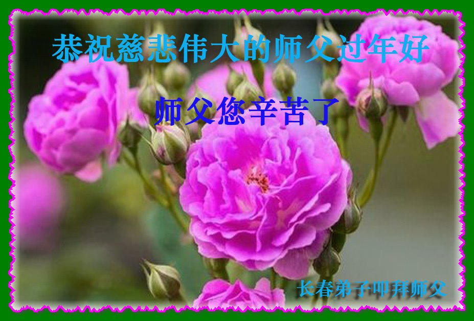 师尊您辛苦了!感恩师尊慈悲苦度,叩拜师尊!我们会坚定的走在助师正法的路上。 长春大法弟子敬上 吉林省长春经开区大法弟子恭祝师尊新年快乐!