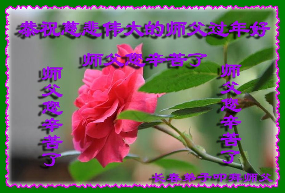感恩伟大慈悲的师尊救度之恩! 长春榆树市一大法弟子及全家敬上 吉林省长春市榆树市一大法弟子恭祝伟大的师尊新年快乐!