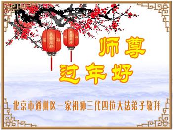 弟子及家人无限感恩师父二十多年来的无量慈悲救度与保护! 弟子在新的一年里要更加精進,不负使命,做好三件事。 北京市通州区一家祖孙三代四位大法弟子恭祝师尊新年快乐!