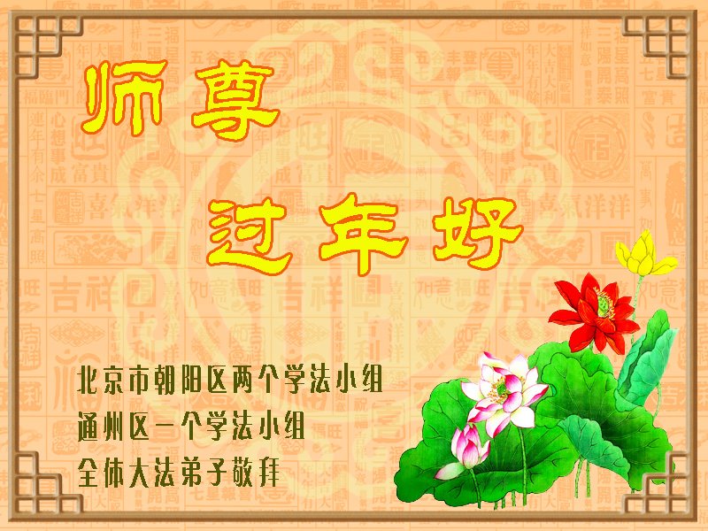 师父过年好!感谢师父慈悲保护!弟子在新的一年里一定做好三件事,助师正法,走好归家路。 北京大法弟子合十 北京市大兴区四人学法小组大法弟子恭祝师尊过年好!
