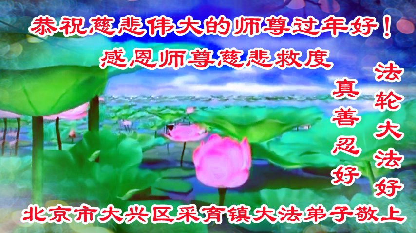 感谢师尊的慈悲保护!我们会相互配合好,相互包容,相互鼓励,只有完成好自己的使命,才不愧对师尊的救度。 北京市大兴区全体大法弟子恭祝师尊过年好!