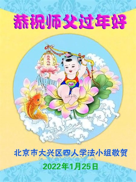 师尊您好: 我们全家大法弟子给您拜年了!感谢师尊!感谢师尊! 北京市一全家大法弟子 2022年1月26日 北京丰台区一大法弟子恭祝师尊过年好!