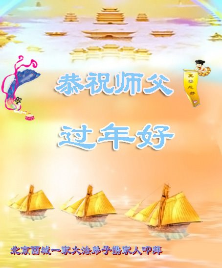 北京天坛地区大法弟子恭祝慈悲伟大的师尊过年好!师父辛苦了! 北京市天坛地区大法弟子敬上 北京市一全家大法弟子给师尊拜年!
