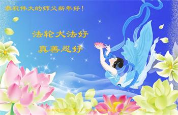 弟子在新的一年里,要多学法,遇事向内找,修好自己,与同修共同精進。做好三件事,让我家的小花开的更鲜艳。谢谢师尊救度之恩。叩拜! 山东省烟台市龙口市一学法小组大法弟子恭祝慈悲伟大的师尊新年快乐!